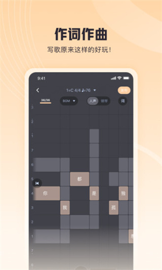 1、“小白也能写歌”的歌曲创作软件,每个人都可以施展才华创造歌声。