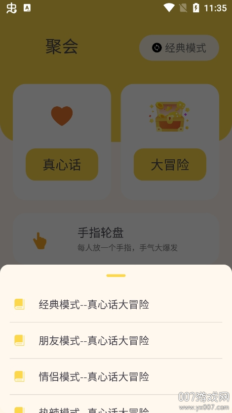 聚会大冒险app是一款专为聚会提供多种娱乐活动的软件,软件内设有真心话大冒险、手指轮盘、转盘、骰子等多种实用的工具,用户可以个根据自己的需求进行选择,而且全部都是免费的,还没有任何的广告,用户可以放心进行使用哦,喜欢的朋友们快点来下载试试吧!