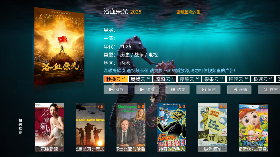 流畅的观影体验:提供一体多功能播放器,支持线上观看和离线缓存,同时界面操作简单,即使是老年人也能轻松上手,让观影过程更加舒适便捷。