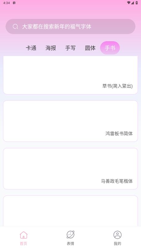字体美化神器是一款拥有多种字体的app,里面有卡通体、海报体、手写体、圆体、手书体等多种风格的字体。字体美化神器app不仅有字体,还有很多热门表情包,这么实用的app,你还在等什么,赶紧来下载呀。
