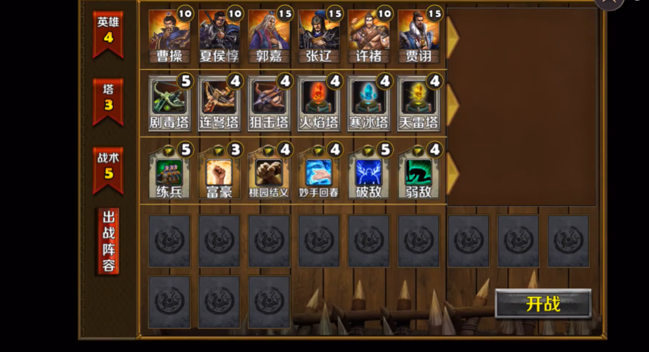 进行排兵布阵,成为强大的三国主公,