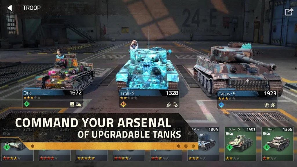 1.游戏以真实的坦克为历史背景并且加入了独特的主被动技能。