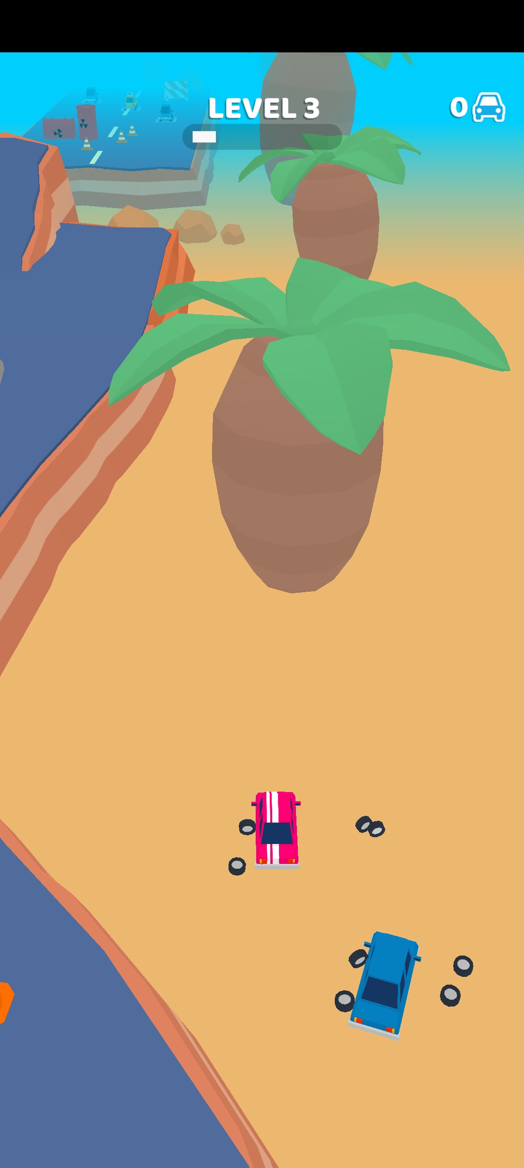 1、复古简单的游戏玩法,玩家控制汽车在关卡中左右移动,躲避对向而来的汽车!