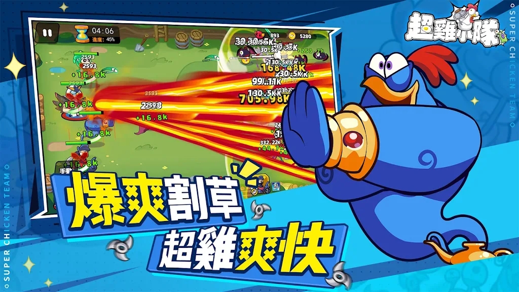 一键清屏超鸡爽!每只小鸡都拥有自己的专属技能,释放奥义击退怪物,感受割草的快感!
