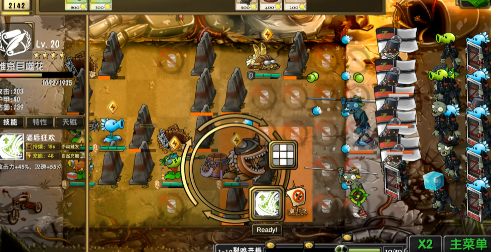前排一定要用能吃伤害的单位去“顶剑气”,比如高血量坚果、诸神版里加强过的铁甲类植物,目的不是挡死它,而是拖时间。剑仙杨桃只要输出被拖慢,后排就有机会成型。