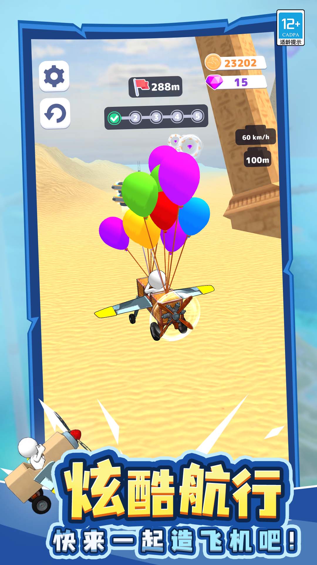 【硬核物理模拟:平衡性决定航程】游戏引入了真实的飞行平衡机制。组件的堆砌必须考虑重心与气动平衡,失衡的飞机将无法平稳飞行。这种“边造边调”的策略感,远超普通跑酷游戏。