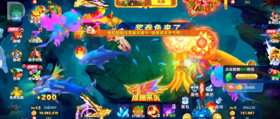 2.游戏也有自动捕鱼的功能,你可以解放双手不用一直摁着