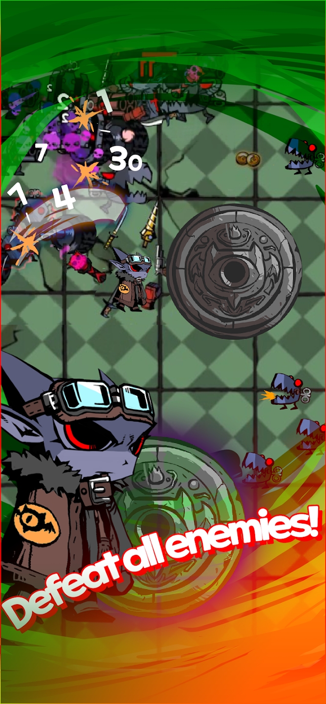 请使用数十种可装备的武器和遗物,在每一层中最多存活2分钟,并在此期间清理掉足够多的敌人。