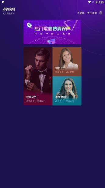 彩铃定制软件是一款彩铃服务手机app,支持定制专属铃声,真人配音,风格内容可自由选择设定,你只需要上传文字就可以获得你想要的特色彩铃,非常的炫酷,适用范围广泛,欢迎大家下载使用!