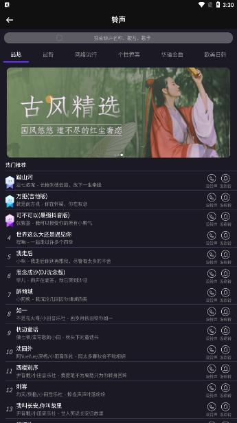 手机彩铃定制软件是一款功能强大的铃声制作神器,这款软件有着海量的热门歌曲与声优,用户可以自行制作热门歌曲的铃声,也能够选择不同声音类型的声优来制作铃声,多种功能可以选择,给用户带来绝佳的体验!