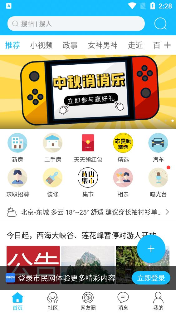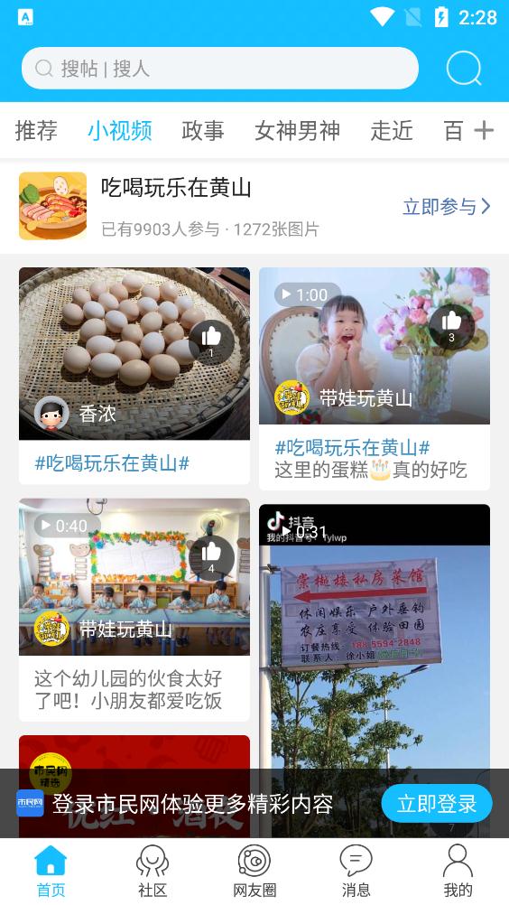 1、黄山市民网的手机客户端,是黄山地区的移动生活门户平台,手机客户端的内容也涵盖了新闻资讯、生活服务、吃喝玩乐。