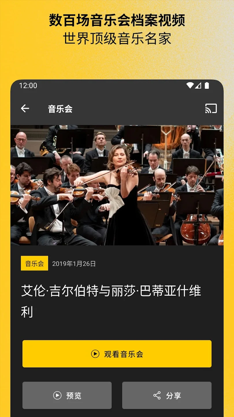 柏林爱乐乐团app官方版为您预留了最佳的视听席位!直播四十余场精彩音乐会,所有演出内容更将在结束后悉数收录至我们的庞大档案库。通过现场直播或随时点播,让大师级的演奏触手可及。需要的用户赶紧来本站下载吧。