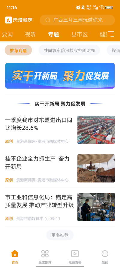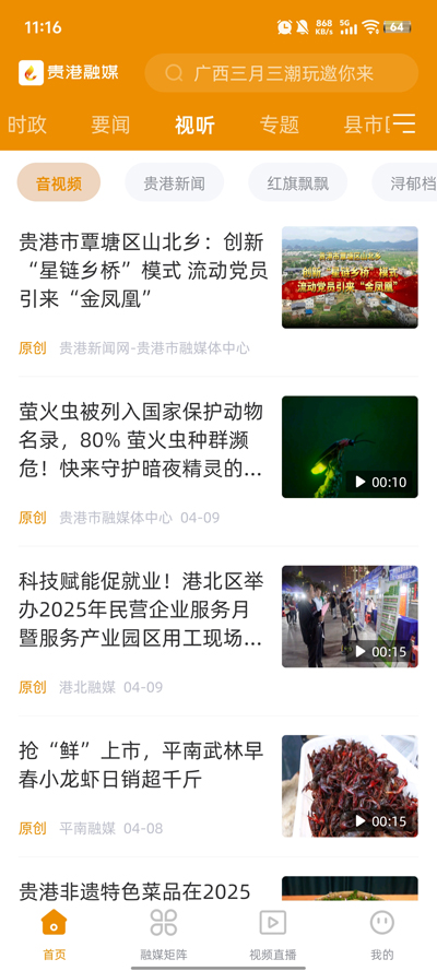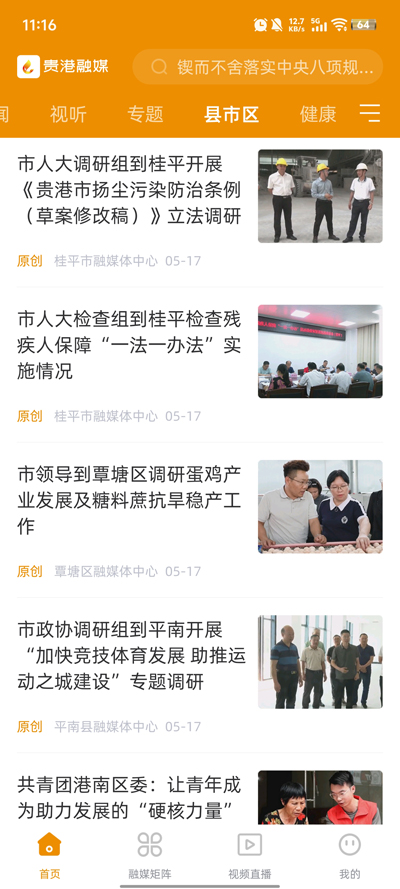 报纸/广播/电视:内嵌贵港日报、贵港广播电视台的数字内容,实现传统媒体内容的移动端延伸与融合传播。