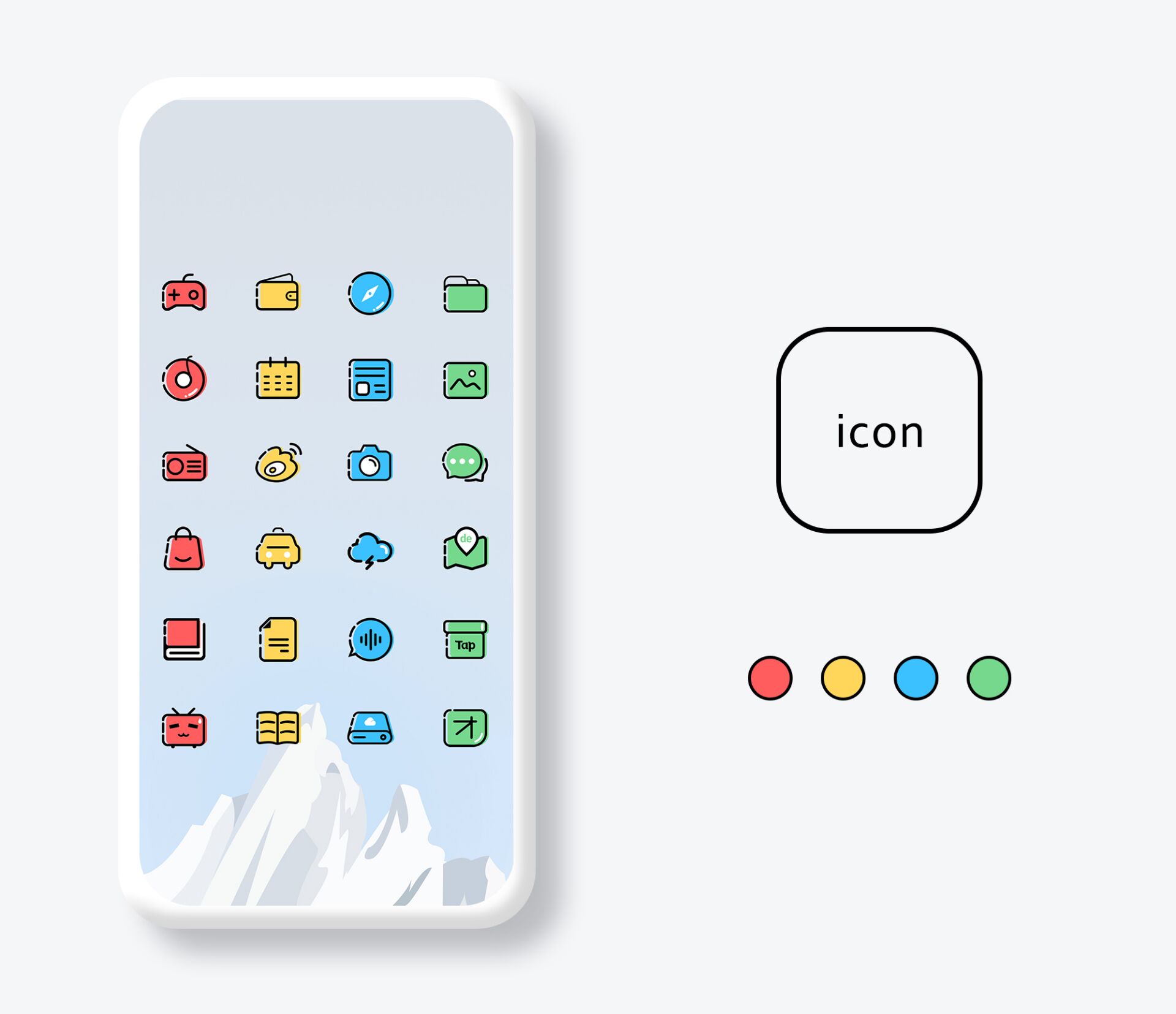 1.有大量简单的手机图标包,非常清新淡雅,图案简单,是年轻人喜欢的风格。