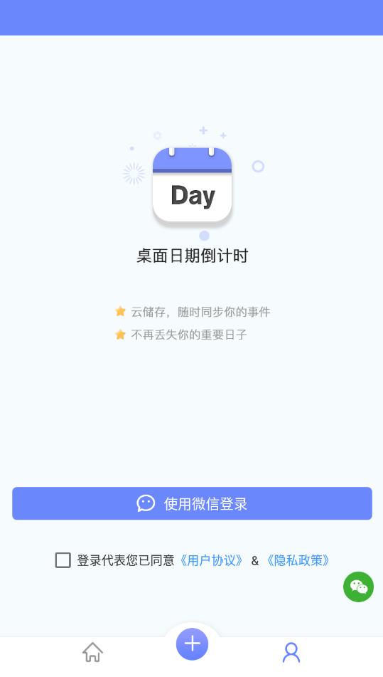4、【微信提醒】微信一键登陆,关联微信公众号,同步日期,在微信公众号可收到倒计时提醒、新建和管理日期。