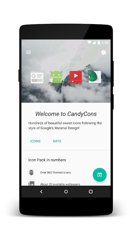 CandyCons图标包是由谷歌的全新质感设计规范启发并制作的图标包。