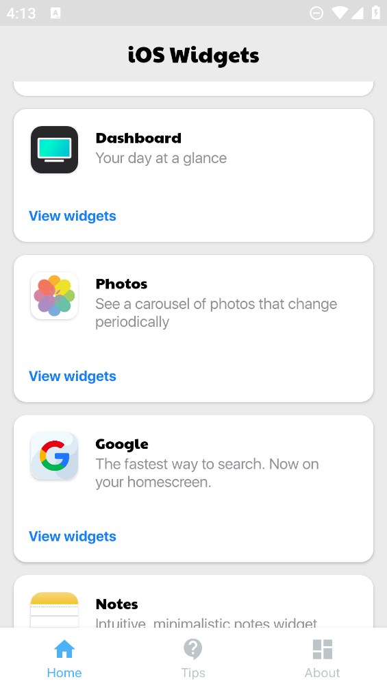 此应用程序尝试尽可能多地复制 Android 设备上的大多数本机 i OS 小部件。只需将小部件添加到主屏幕即可。