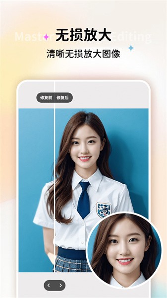 修图大师软件是一款非常好用的手机线上修图工具,在这里用户可以通过软件轻松进行图片加工处理,多功能多特效,修复照片、动漫头像、无损放大等等,如果你也想试试就快来下载看看吧!