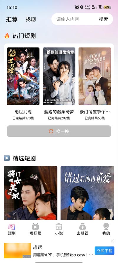 内容丰富: 除了短剧外,还提供短视频、小说等多种娱乐内容。