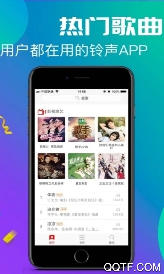 进入之后,在最上面可以进行你所喜欢铃声的搜索和下载。你也可以直接选择热门推荐里面的歌曲,选择你喜欢的就好。