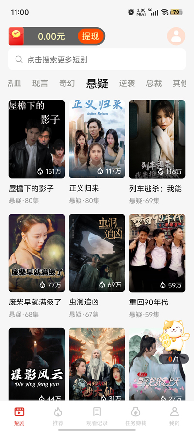 海量短剧:平台收录了各种类型的短剧,包括搞笑、爱情、悬疑、职场等,满足不同用户的喜好。