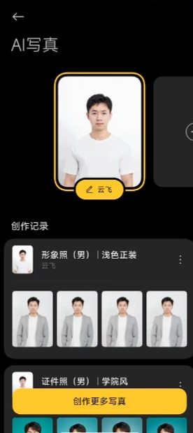 其中AI写真可以通过你的多张照片学习你的特征,并创作出全新的照片。
