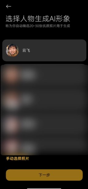 基于相册中的人物照片,在用户授权后训练生成AI人物形象,用户可基于生成的AI形象进行图像创作。