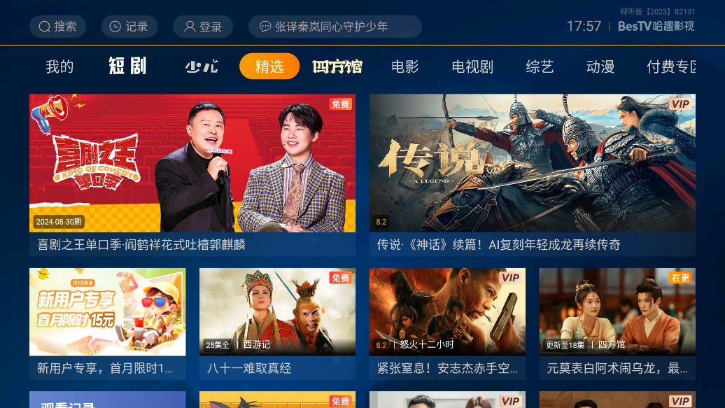 打开BesTV哈趣影视,在主页点击上方的登录功能。