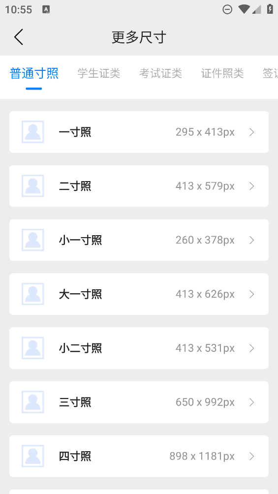 3、多种证件照尺寸的选择,多种尺寸根据个人的需求进行操作,十分的专业化。