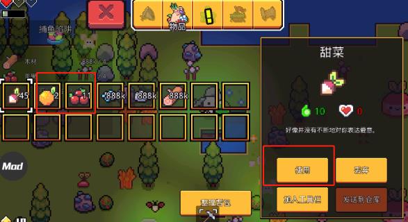 10、当下图这里变空的时候,意味着角色需要吃东西了,点开菜单,然后点击可以填饱肚子的食物,然后使用就可以恢复能量。