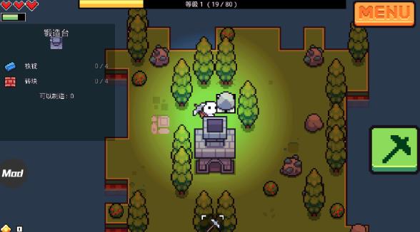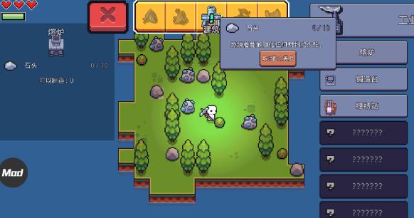 5、然后回到刚开始的页面,开始寻找熔炉的配方——石头;走到石头的旁边,点击右边的锄头按钮;