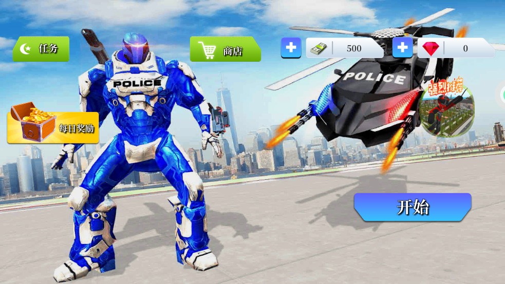 准备好体验飞行直升机与汽车的追逐游戏!机甲飞行大战包括汽车射击.汽车直升机射击和机甲射击,在游戏中,玩家将驾驶汽车或机甲,锻炼汽车追逐与射击技巧,打败企图扰乱城市秩序的黑暗势力,维护公平正义!