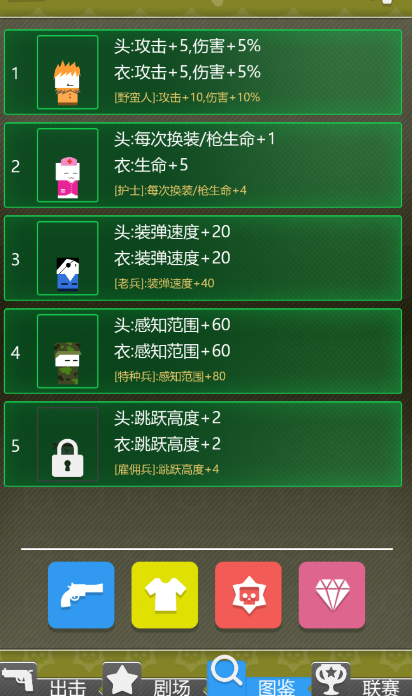 如果你不是追求当榜首的大佬的话,初始的衣服够你爬上250+层都没问题,等你有深一步的追求了,那肯定要把剩下的都解锁了。不解锁那么多衣服有一个好处,商店刷新的东西少了,遇到的概率大,超容易成型,同理,枪支也是一样的。