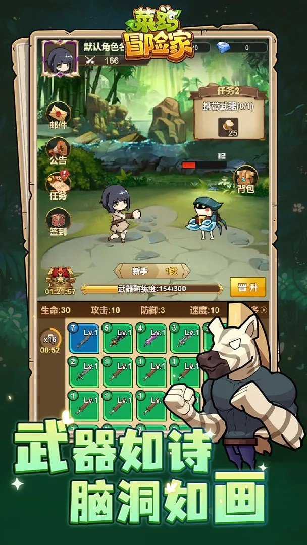 2,放置冒险挑战,获得各种的奖励道具,变得更加强大。