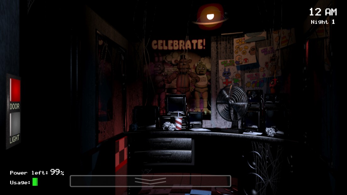 《玩具熊的五夜后宫FiveNightsatFreddy's》是一个PC移植的动作冒险游戏,游戏主要以恐怖为主,在游戏中营造了一种很好的氛围!主人公是是一个披萨店的监控保安,这家店为了吸引孩子们而搞来了很多玩具熊,其实这些玩具熊的皮套下是AI机器人,玩家在午夜之后还要监控店铺内部,但是这些玩具熊莫名其妙地开始活动了,寂静的夜晚变得恐怖起来,而你则要这样子渡过五个晚上!!!所以,是要被萌萌的玩具熊主动推到还是注定孤独一生,你会选哪个?