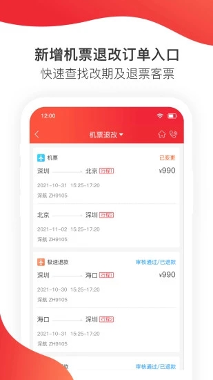 1、新增机票退改订单入口,快速查找改期及退票客票