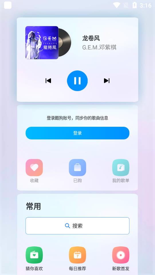 3.登录酷狗音乐同步电脑上酷狗音乐我的收藏歌曲;