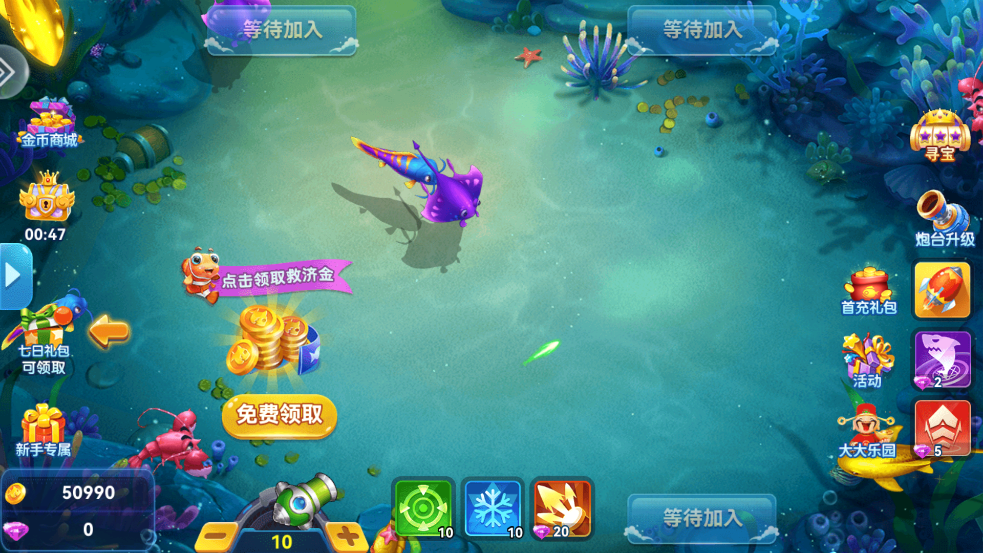 定屏/冰冻:冻结全屏鱼群,使其无法游动,提高捕获几率。