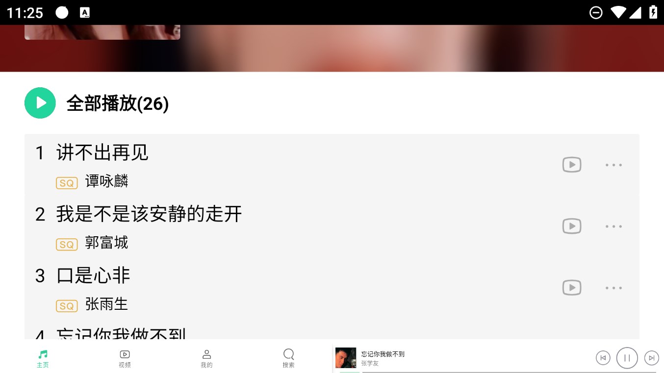 1.首先找到你想播放MV视频的歌曲播放