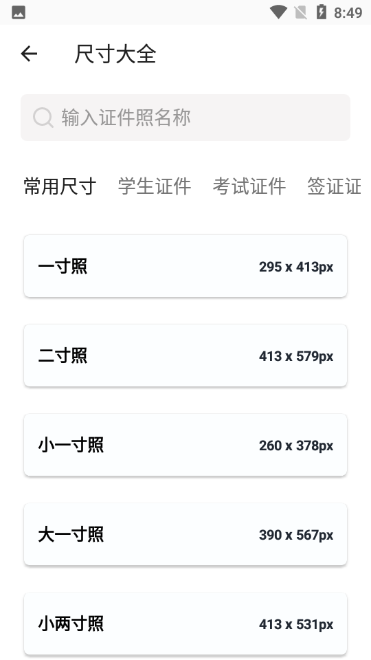 证件照规格丰富,适用于多种场景。