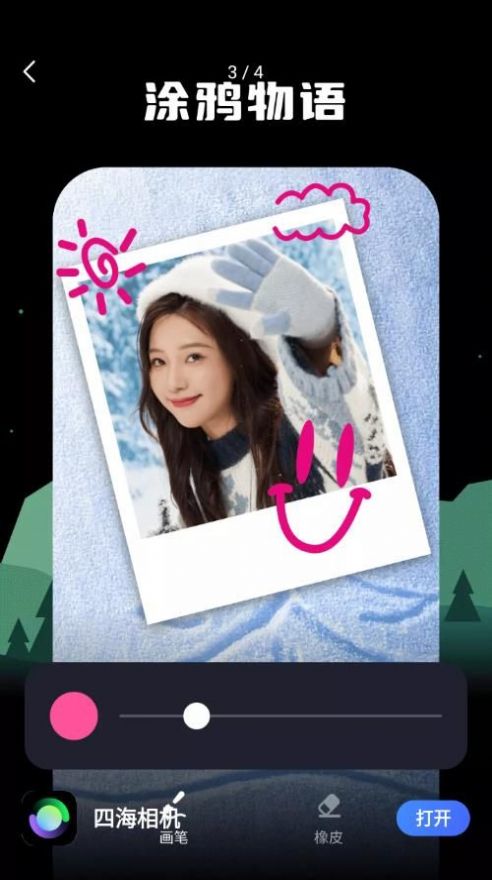 四海相机app手机版是一个美颜相机软件,为爱拍照爱发朋友圈的mm提供解决方案,任性涂鸦、趣味贴纸打造个性照片,丰富滤镜满足你各种需求,精细编辑拯救逆光大黑脸,喜欢的朋友赶紧来下载吧。