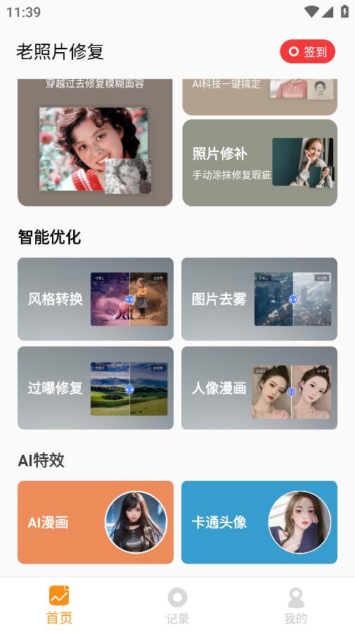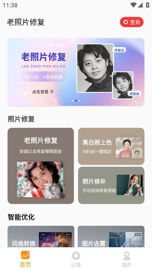 年复一年app安卓版是一个照片修复软件,为用户提供丰富的修图工具,给黑白照片上色、修复老照片、照片去雾、过曝修复、制作卡通头像....操作简单,需要的朋友赶紧来下载吧。
