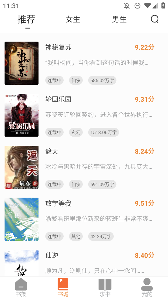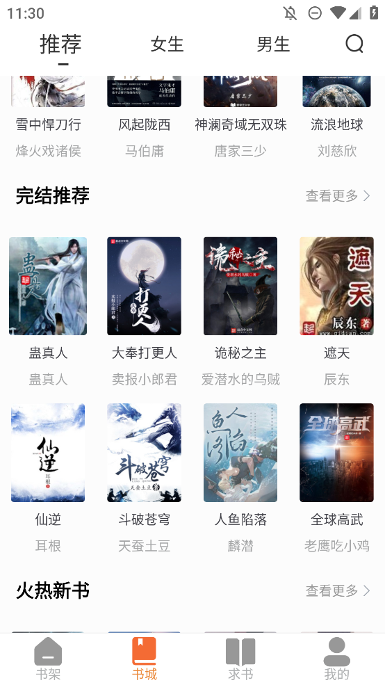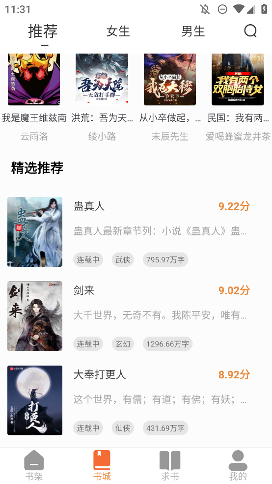2.在书城里面你可以看到给你推荐的一些优质小说