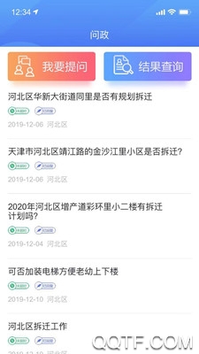 “问政”为群众反映问题的政务服务功能,网民可以将遇到的问题反映至区长或区委书记,并通过查询码对问题进行结果查询。