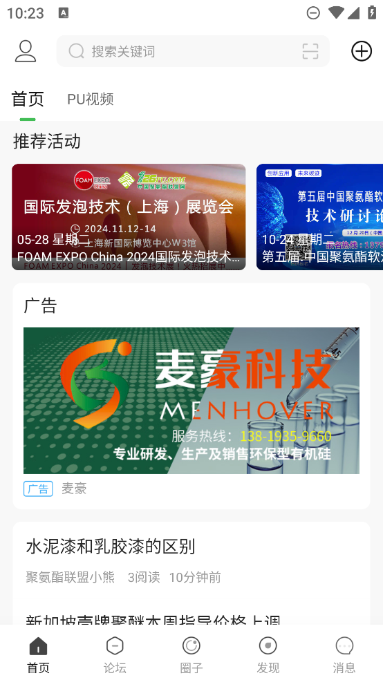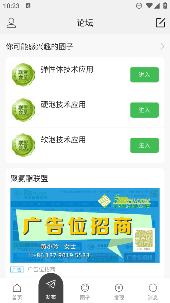2、掌上论坛,论坛中有各种关于聚氨酯技术的圈子,可选择感兴趣的加入