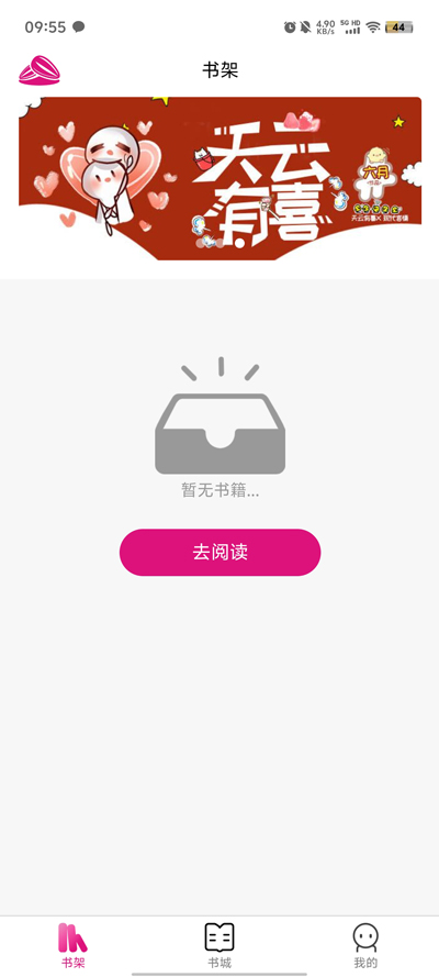 3.书架包含自带图书和近阅读等图书数据,让你在这里输入寻找更加的放心,另外也是有推荐阅读;