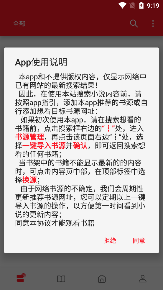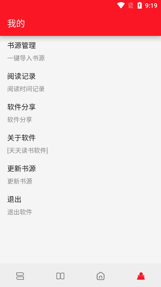 打开你的天天读书App,在个人中心点击书源管理工作。