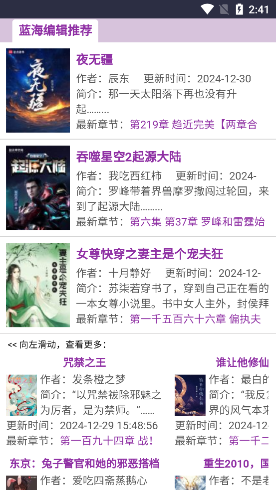 蓝海搜书app官方版海量正版小说免费看,仙侠、重生、都市、应有尽有!告别弹窗广告,给你纯净的阅读体验。一键搜索,快速找到你的心头好。更有书友社区等你加入,一起畅聊书中的世界!需要的用户赶紧来本站下载吧。