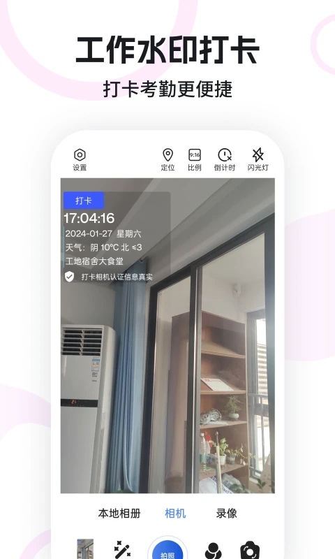 自动添加水印: 拍照时,水印会自动添加到照片上,无需后期编辑。