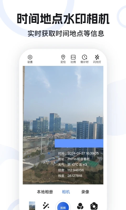 定位功能: 可以准确获取拍摄地点的经纬度信息,并添加到水印中。